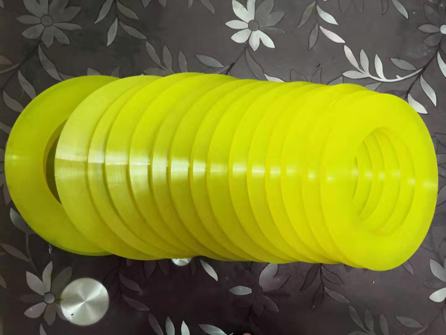 黃色聚氨酯縱剪分條機(jī)退料膠圈產(chǎn)品展示! |