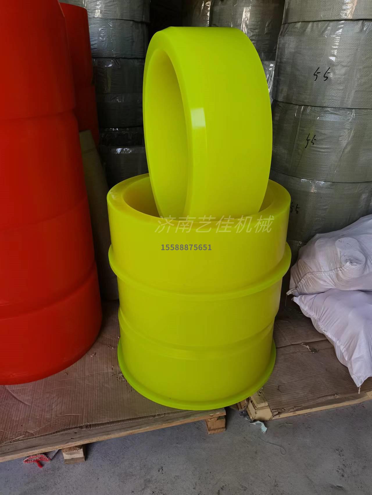 工廠在進行金屬卷材加工業(yè)務時,經(jīng)常會遇到卷材內徑不一致的問題,例如正常情況下,開卷機上料卷筒加工內徑為508mm的金屬卷板,直接用上料小車將鋼卷送至卷筒上面,漲開即可操作,但是國標卷材內徑還有610mm、730mm、760mm等,卷筒最大卻也只能漲開到515-520mm,那么這時該怎么辦呢?濟南藝佳開卷機增徑套為您解決這方面難題。每個鋼卷內徑尺寸都有相應的開卷機聚氨酯增徑膠套型號與之匹配,圖片如下,詳情咨詢15588875651、13969066363(微信同號)